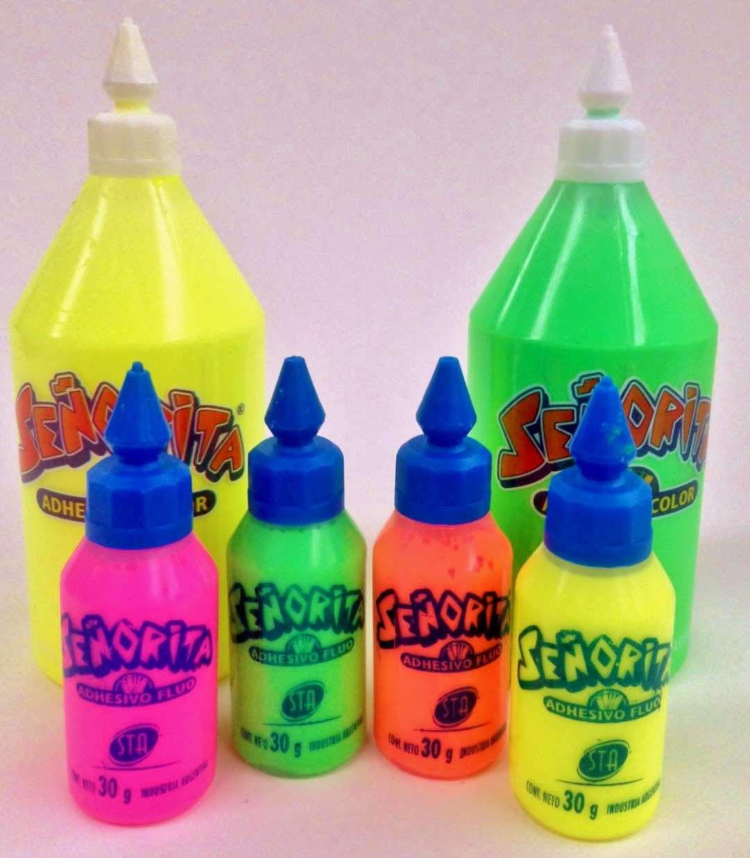 Presentación y Colores Pack con 12 frascos de 30 g. Unicolor Pack con 12 frascos de 30 g. Surtido (3 Rosa Fluo, 3 Verde Fluo, 3 Anaranjado Fluo, 3 Amarillo Fluo. |