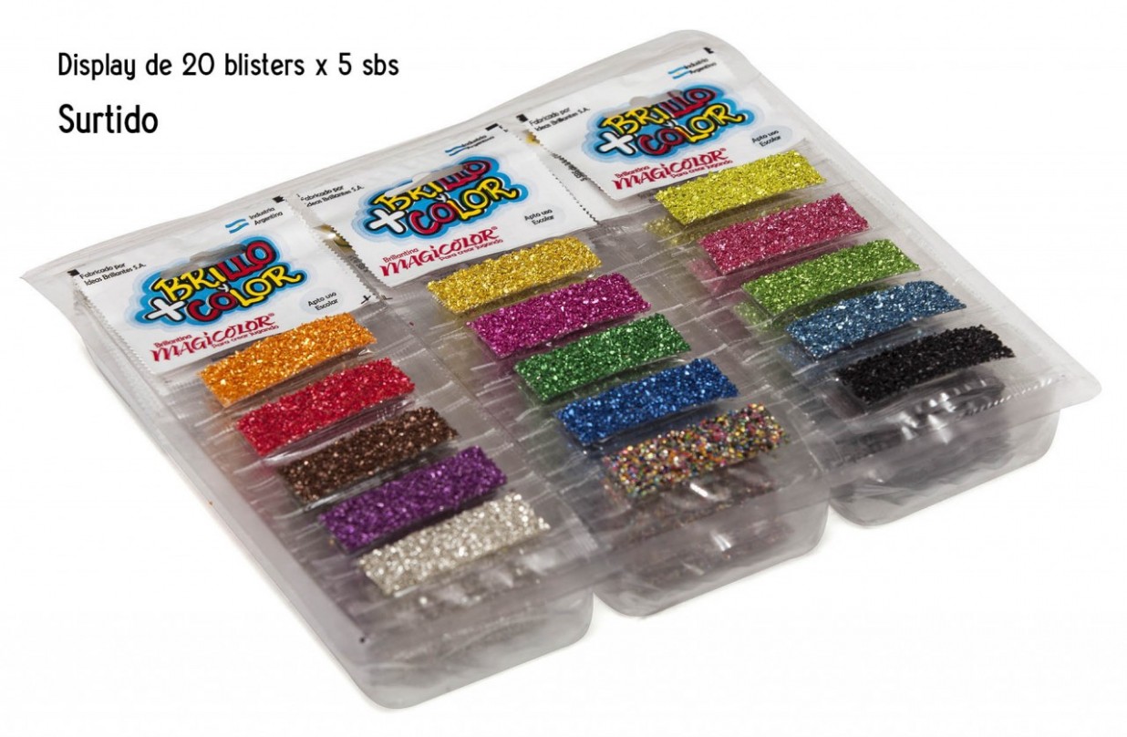 Brillantina elaborada con productos minerales, carbonatos y silicatos naturales reconvertidos de óptima calidad que obtienen color por su tinción con pigmentos de última generación y alta tecnología.