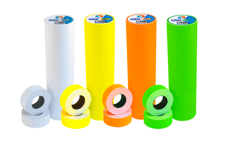 Etiquetas de precios autoadhesivas para etiquetadora. Presentación Tubo x 10 Rollos. (800 Etiquetas x rollo).