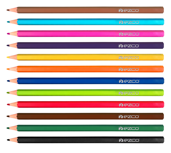 Lápices de colores, cuerpo plástico hexagonal, mina resistente 2.6 mm, colores brillantes, no tóxicos, no se astilla, diseño ergonómico.