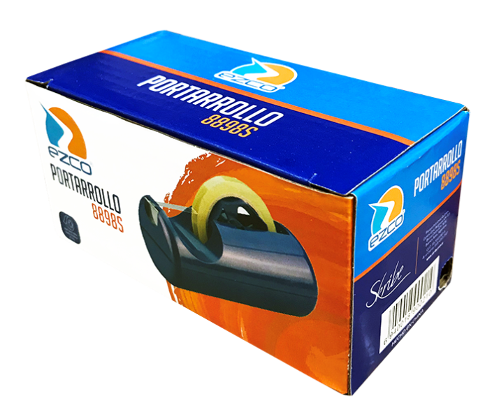 Portarrollos para cinta adhesiva. Tamaños: chico, mediano (rollos 19 mm x 25 mts) y grande (30/60 mts). Colores: negro y gris.
