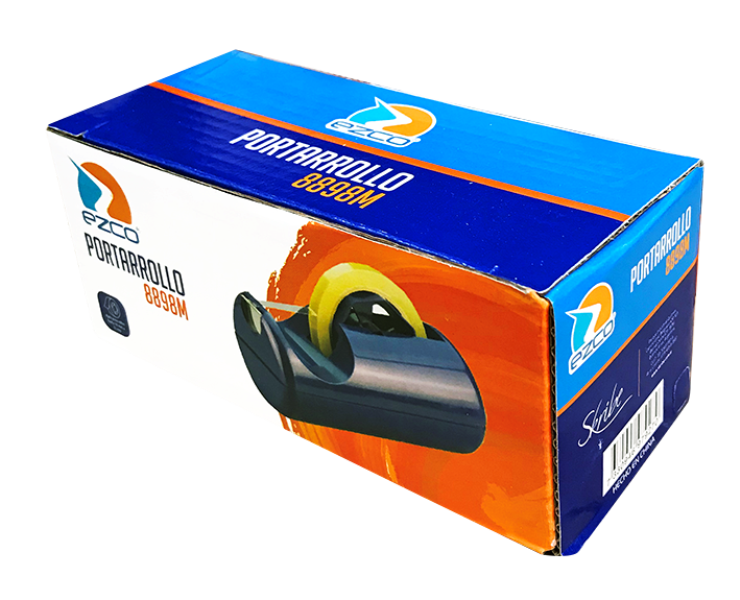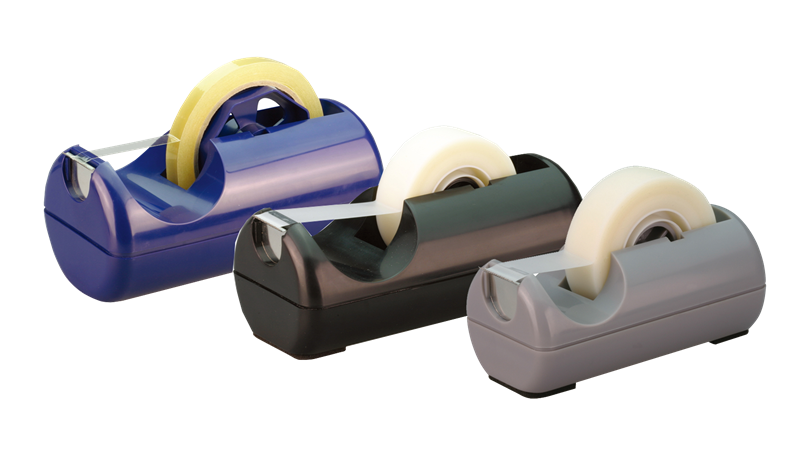 Portarrollos para cinta adhesiva. Tamaños: chico, mediano (rollos 19 mm x 25 mts) y grande (30/60 mts). Colores: negro y gris.