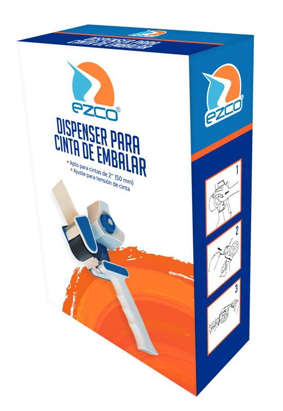 Dispenser para cinta de embalar, hojas de acero, mango ergonómico. Presentación en caja.