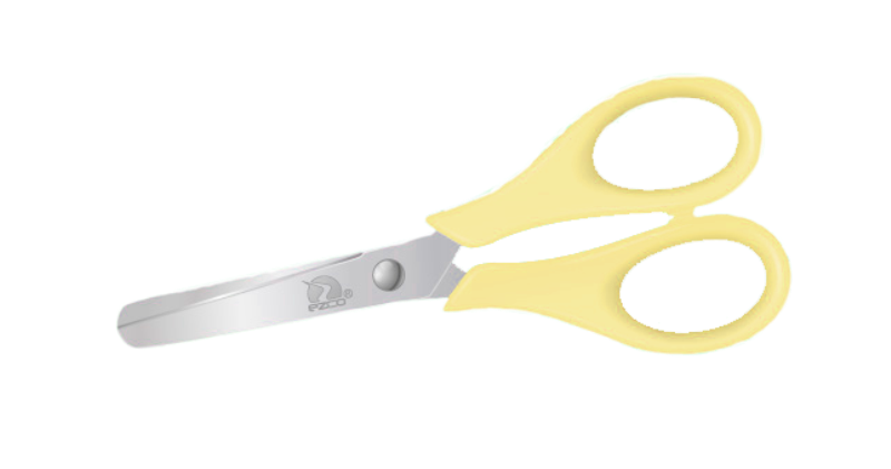 510458 : Tijera escolar de 12 cm, punta redondeada, acero de alta calidad de corte, colores pastel: (amarillo, rosa y celeste).